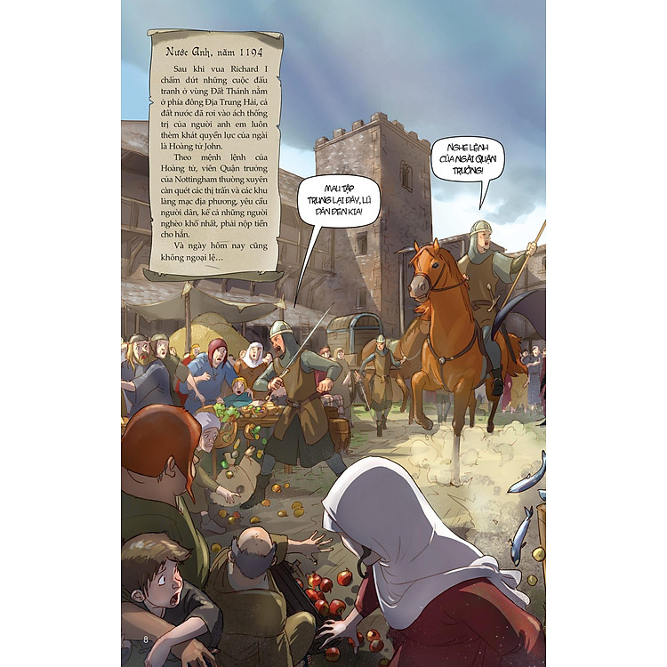 “Graphic Legends – The Adventures Of Robin Hood” mô tả cuộc sống của những người dân nghèo tại Nottingham, nơi họ phải chịu đựng sự thống trị của tên quận trưởng Sheriff tham lam. Giữa những bất công đó, Robin Hood nổi lên như một biểu tượng của sự kháng cự. Anh cùng với những người bạn đồng hành, không ngừng chiến đấu để bảo vệ những người yếu thế và giành lại công lý. Cuốn sách không chỉ đơn thuần là một câu chuyện phiêu lưu, mà còn là một bài học về sự kiên cường và tinh thần đồng đội.