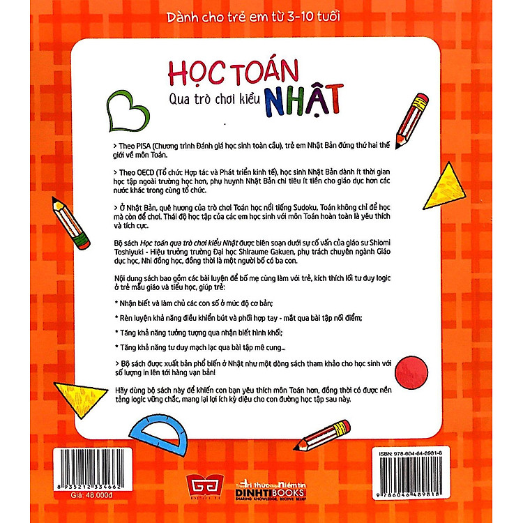 Bạn có bao giờ tự hỏi, vì sao trẻ em Nhật Bản lại nổi bật trong môn Toán đến vậy? Họ không chỉ đứng thứ hai thế giới về khả năng toán học mà còn sở hữu một phương pháp học vô cùng độc đáo và thú vị. “Học Toán Qua Trò Chơi Kiểu Nhật – Hình Dạng” chính là chìa khóa giúp bạn hiểu rõ hơn về cách tiếp cận này. Cuốn sách này sẽ giúp bạn mở ra một thế giới đầy màu sắc của toán học thông qua những trò chơi sinh động, giúp trẻ không chỉ học mà còn yêu thích môn học này.