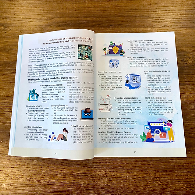 - Cuốn sách “Hướng Dẫn Khám Phá Thế Giới Trực Tuyến An Toàn và Thông Minh cho Học Sinh” là cẩm nang song ngữ (Anh – Việt).