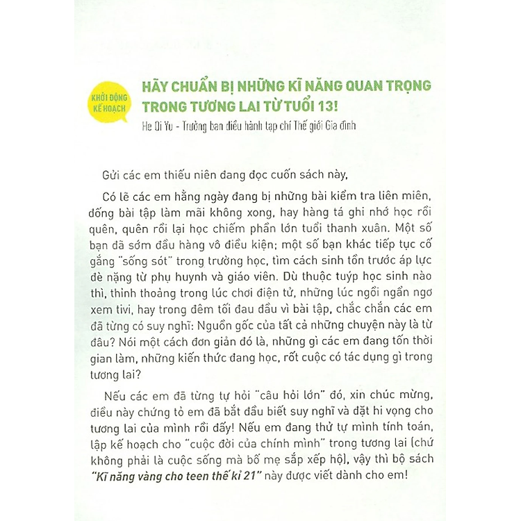 Kĩ Năng Vàng Cho Teen Thế Kỉ 21 – Bí Kíp Quản Lí Cảm Xúc là một tác phẩm thiết thực dành riêng cho các bạn trẻ từ 11 đến 15 tuổi. Cuốn sách không chỉ đơn thuần là một hướng dẫn lý thuyết về quản lý cảm xúc. Thay vào đó, nó giúp bạn nhận diện và hiểu rõ những cảm xúc của mình trong những tình huống cụ thể. Bằng những câu chuyện gần gũi và dễ hiểu, tác giả mang đến cho độc giả những bài học quý giá về việc làm chủ cảm xúc, từ đó xây dựng mối quan hệ tốt đẹp hơn với bản thân và mọi người xung quanh.
