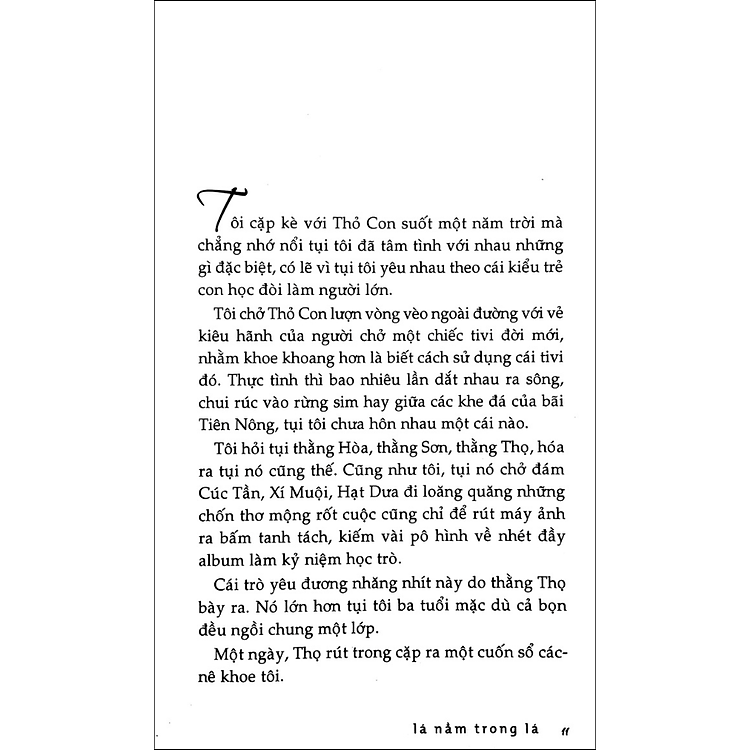 Khi nhìn lại quãng thời gian học trò, chắc hẳn bạn sẽ nhớ đến những kỷ niệm vui buồn bên bạn bè, những giấc mơ chưa thành hình và cả những bài học quý giá. Cuốn sách “Lá Nằm Trong Lá” như một chiếc cầu nối đưa ta trở về những năm tháng ấy, nơi mà những mối quan hệ thật sự và những cảm xúc chân thành vẫn chưa bị phai nhòa. Cuốn sách này sẽ giúp bạn tìm lại những giá trị giản dị mà vô cùng quý giá trong cuộc sống.
