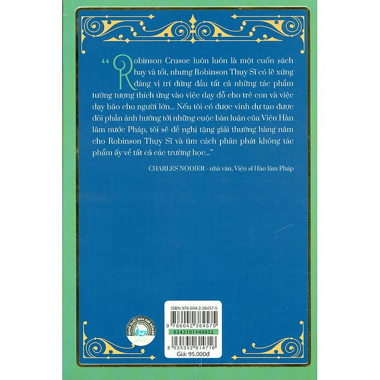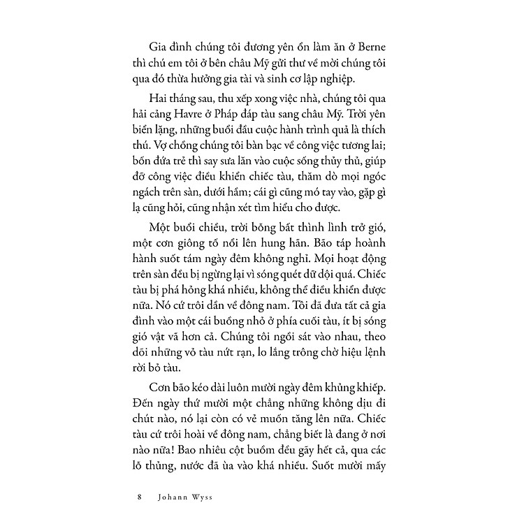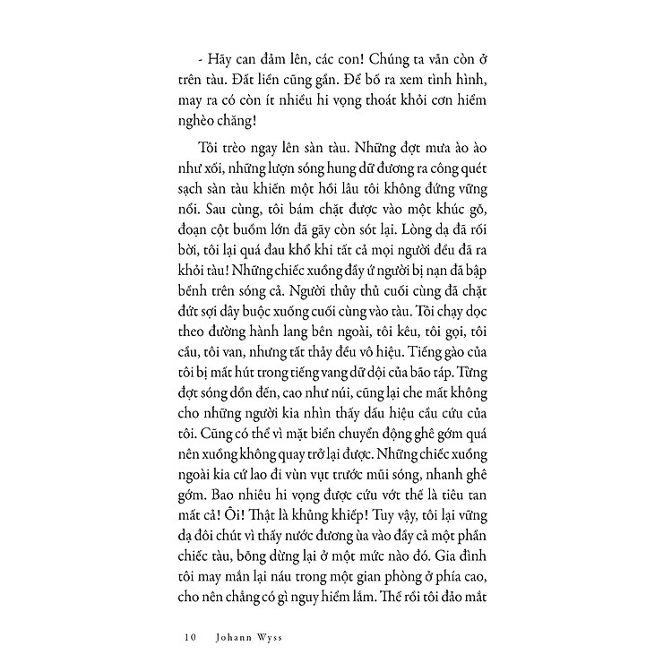 Sách kinh điển của NXB Kim Đồng thì mình rất hài lòng. Thứ nhất là bìa khá đẹp (Riêng quyển này thì mình thấy bìa không đẹp bằng những quyển kinh điển khác), chất liệu giấy khá tốt, màu hơi tối nhưng được cái nhẹ, và giá rất phải chăng. Câu chuyện của tác giả khiến mình phấn khích vì được dõi theo cuộc phiêu lưu của cả gia đình giữa thiên nhiên hoang dã. Nó còn dạy cho mình thêm nhiều bài học và kĩ năng sinh tồn bổ ích nữa. Và quan trọng nhất, tình cảm gia đình gắn bó giữa các thành viên thật khiến mình ghen tỵ. Đây là một quyển sách rất hay.