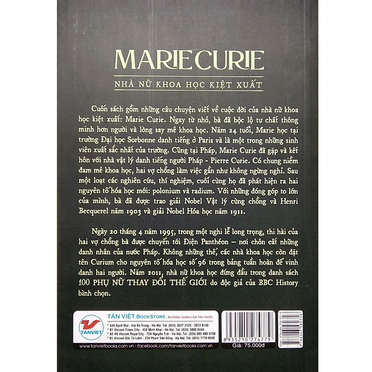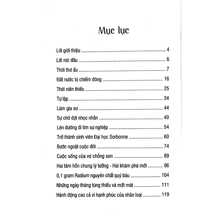 - Cuốn sách kể về cuộc đời của nhà nữ khoa học nổi tiếng Marie Curie.