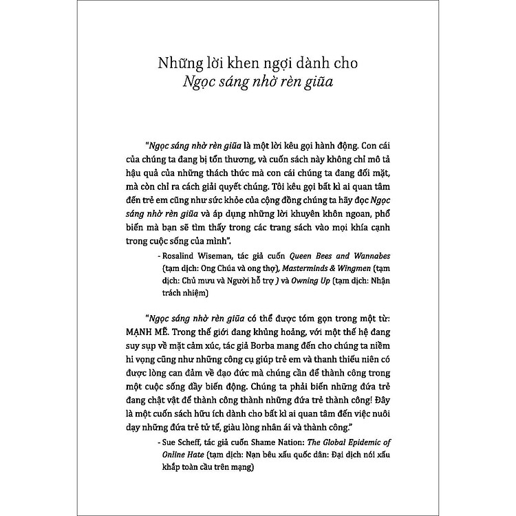 - Tựa sách: “Ngọc Sáng Nhờ Rèn Giũa” của tác giả Michele Borba.