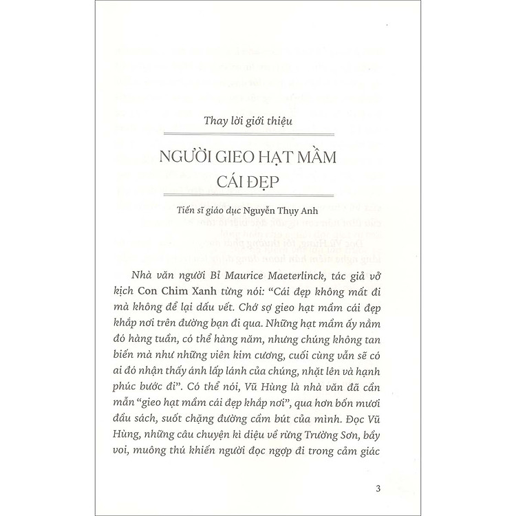 Rất thích những tác phẩm của nhà văn của Vũ Hùng -cây bút viết cho thiếu nhi. Chỉ tiếc rằng quyển sách này chưa tập hợp đầy đủ tác phẩm của ông, bị tách lẻ ra nên đọc thiếu thiếu như Sống Giữa Bầy Voi…Mong các truyện khác cũng được nhà xuất bản nghiên cứu cho tái bản lại phục vụ cho độc giả nhỏ tuổi