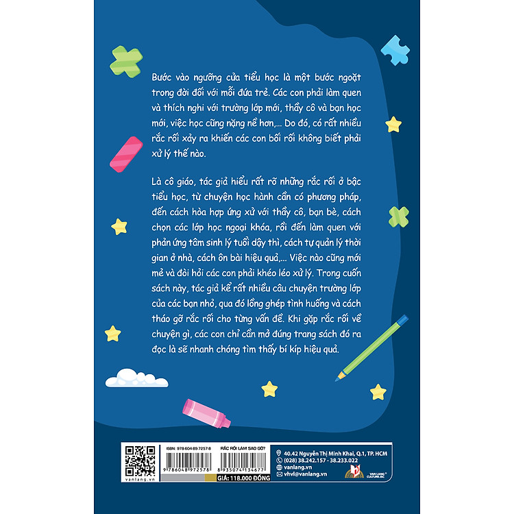 Khi bước vào tiểu học, mỗi đứa trẻ như đang đứng trước một cánh cửa lớn, nơi có nhiều điều mới mẻ đang chờ đón. Thế giới xung quanh bỗng trở nên rộng lớn hơn, với bạn bè, thầy cô và những bài học không chỉ về kiến thức mà còn về cách sống. Những rắc rối đầu tiên cũng bắt đầu xuất hiện, từ việc hòa nhập với bạn bè, đối phó với áp lực học tập, cho đến việc tìm kiếm bản thân trong một môi trường mới. “Rắc Rối Làm Sao Gỡ” chính là hành trang cần thiết, giúp các bé vượt qua những khó khăn ấy. Cuốn sách này sẽ giúp bạn hiểu hơn về những thách thức mà trẻ phải đối mặt và cách để hỗ trợ chúng.