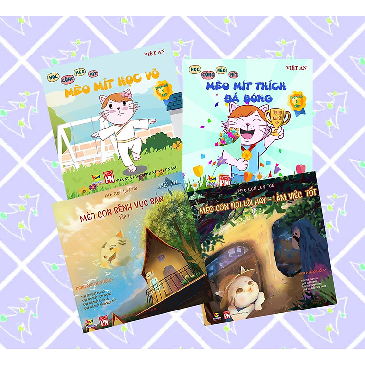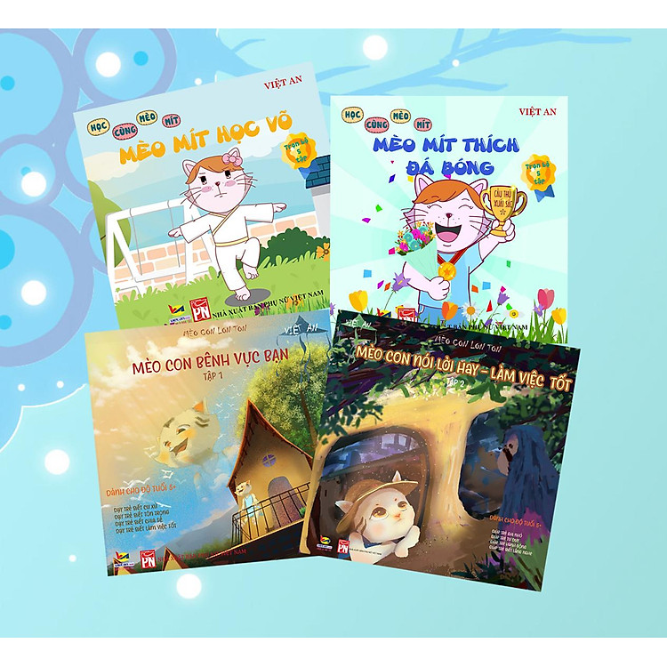 - Bao gồm 4 cuốn truyện: Mèo Mít thích đá bóng, Mèo Mít học võ, Mèo Con bênh vực bạn, Mèo Con nói lời hay – làm việc tốt.