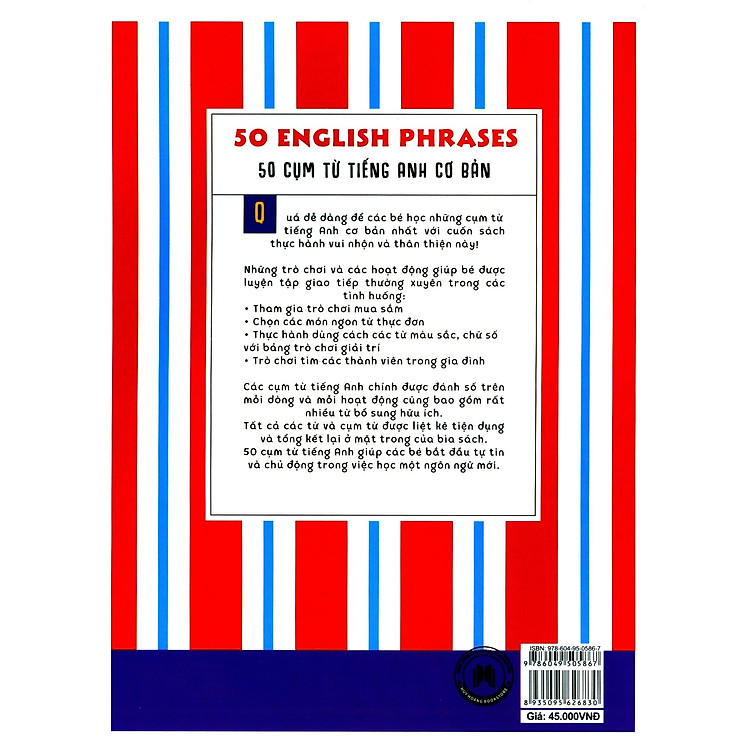 - Đặc điểm nổi bật: Sách hỗ trợ trẻ em học các cụm từ tiếng Anh cơ bản qua trò chơi và hoạt động giao tiếp vui nhộn.