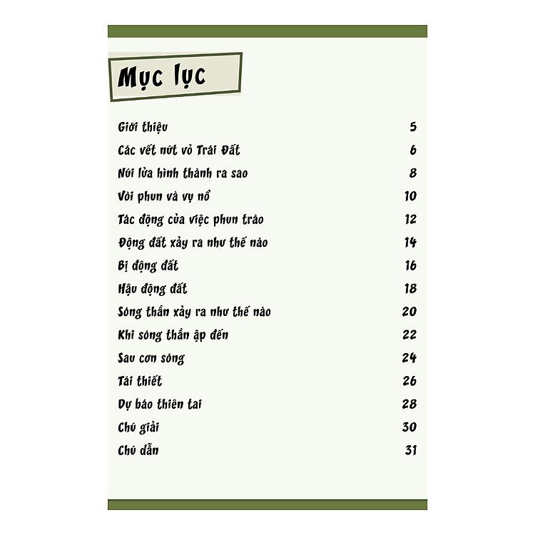 - Chủ đề chính: Núi lửa, động đất và sóng thần.
