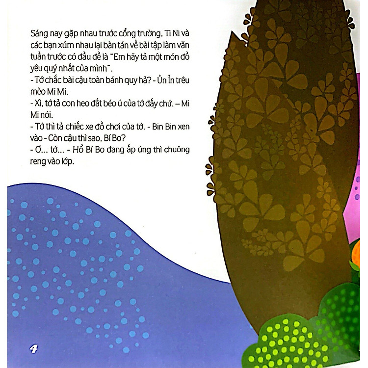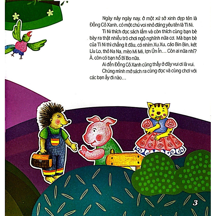 Tini Và Các Bạn – Bí Bo Viết Văn kể về chú voi Ti Ni, một nhân vật đáng yêu sống ở Đồng Cỏ Xanh. Ti Ni không chỉ thích đọc sách mà còn yêu thích việc tham gia vào những trò chơi cùng bạn bè. Qua từng trang sách, chúng ta sẽ theo chân Ti Ni trong những cuộc phiêu lưu sáng tạo, nơi mà việc viết văn trở nên sống động và thú vị hơn bao giờ hết. Cuốn sách này nhẹ nhàng hướng dẫn trẻ em cách thể hiện bản thân qua từng câu chữ, giúp các bạn nhỏ nhận ra rằng viết văn không chỉ là bài tập, mà còn là một niềm vui.