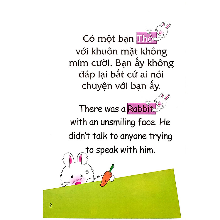 Học từ vựng tiếng Anh tự nhiên: Với cách trình bày song ngữ, trẻ sẽ dễ dàng ghi nhớ từ vựng mới một cách tự nhiên, như khi bé thấy hình ảnh của Thỏ Con bên những viên kẹo.