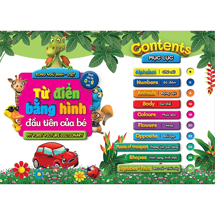 - Tựa đề: Từ điển bằng hình đầu tiên của bé – song ngữ Anh – Việt.