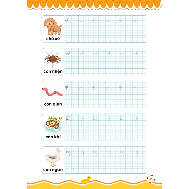 - Hướng dẫn chi tiết từng nét chữ: Mỗi bài tập đều có minh họa cụ thể, giúp trẻ dễ dàng hình dung và bắt chước.