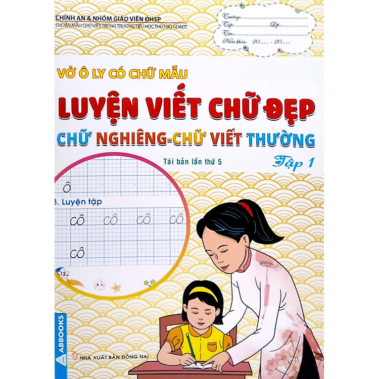- Sản phẩm: Vở Ô Ly Có Chữ Mẫu Luyện Viết Chữ Đẹp (Chữ Nghiêng, Chữ Viết Thường) – Tập 1 (Tái Bản).