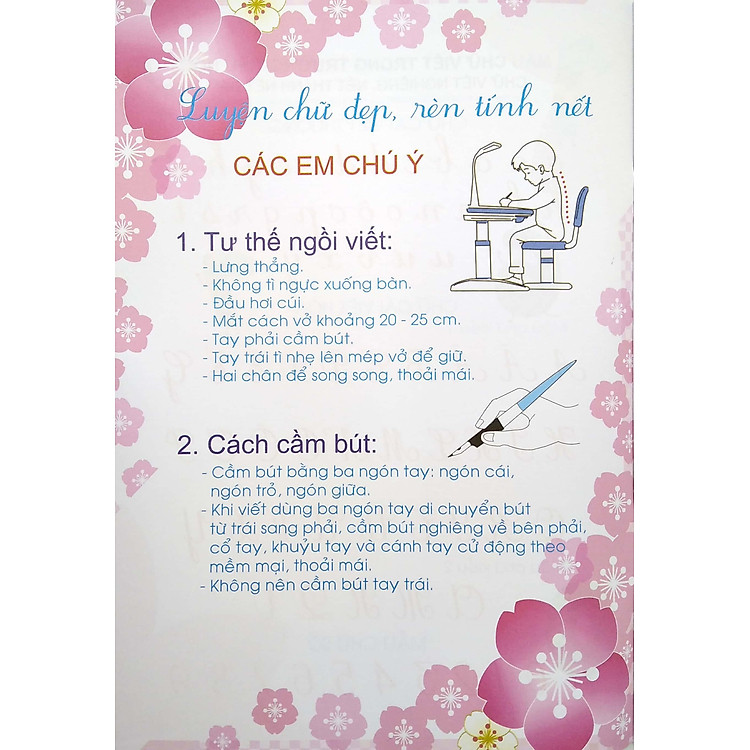 - Hướng dẫn chi tiết về tư thế ngồi: Cuốn sách nhấn mạnh tầm quan trọng của tư thế ngồi viết. Đầu hơi cúi, mắt cách vở khoảng 20-25cm, tay cầm bút đúng cách giúp người viết thoải mái hơn. Mình thấy, việc này thật sự quan trọng cho những ai muốn duy trì thói quen viết chữ đẹp lâu dài.