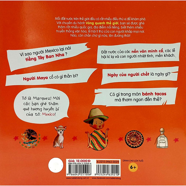 Bạn đã bao giờ mơ ước được lang thang trên những con phố của Mexico, nơi mà âm thanh của âm nhạc truyền thống hòa quyện với mùi thơm của các món ăn đặc trưng? Cuốn sách Vòng Quanh Thế Giới – Mexico sẽ đưa bạn vào một hành trình kỳ thú, không chỉ đơn thuần là khám phá địa lý mà còn là tìm hiểu về văn hóa, con người và lịch sử của đất nước này. Thông qua những trang sách, bạn sẽ cảm nhận được vẻ đẹp và sự kỳ diệu mà Mexico mang lại, từ những bãi biển tuyệt đẹp đến những đền thờ cổ kính. Cuốn sách này sẽ giúp bạn mở rộng tầm nhìn và trải nghiệm những điều mới mẻ từ một đất nước đầy sắc màu.