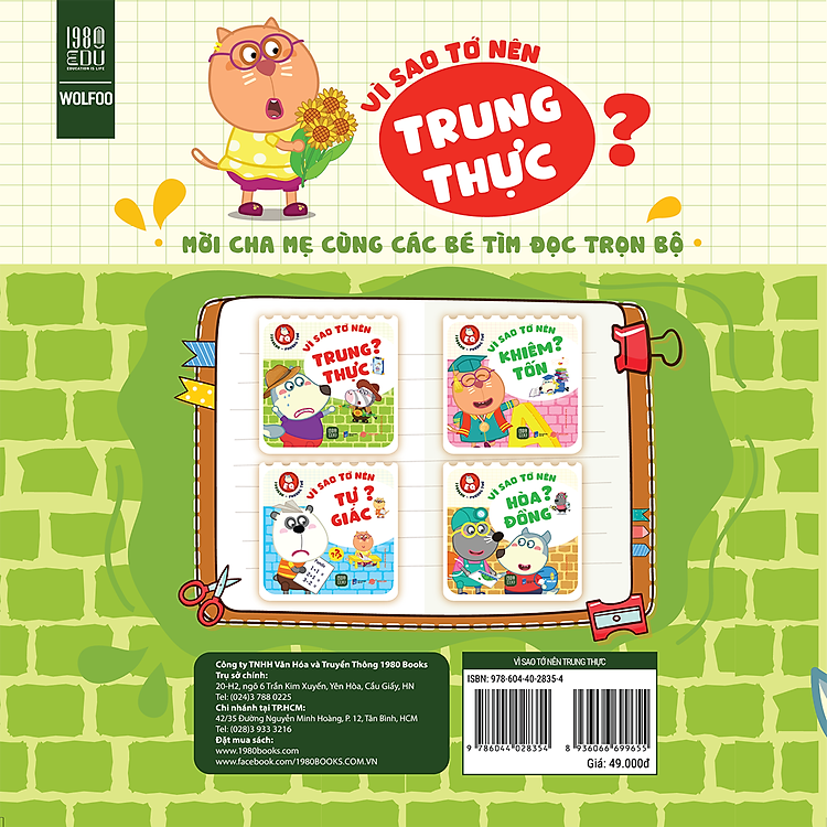 Wolfoo EQ – Vì sao tớ nên trung thực là một phần trong bộ sách Wolfoo EQ, tập trung vào việc giúp trẻ em hiểu rõ tầm quan trọng của sự trung thực. Nội dung cuốn sách khắc họa những tình huống thực tế mà các nhân vật đối diện, từ đó giúp các em nhận ra rằng trung thực không chỉ là một phẩm chất tốt mà còn là nền tảng cho những mối quan hệ bền vững. Với cách tiếp cận nhẹ nhàng và đầy tính giáo dục, cuốn sách này sẽ giúp bạn đọc nhỏ tuổi hiểu được rằng sự trung thực không chỉ đem lại lợi ích cá nhân mà còn tạo ra một môi trường sống tốt đẹp hơn.