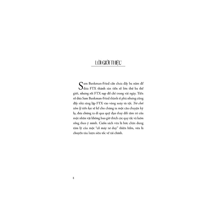 Cuốn sách này không chỉ đơn thuần là câu chuyện về Sam Bankman-Fried – một trong những tỷ phú trẻ nhất thế giới, mà còn là cái nhìn sâu sắc vào một thế giới mà ở đó, tiền điện tử và giao dịch tần số cao trở thành những nhân tố định hình. Michael Lewis khéo léo dẫn dắt người đọc qua những thăng trầm của một nhân vật gây tranh cãi, từ những đỉnh cao của thành công cho đến những thất bại thảm hại. Câu chuyện không chỉ là một bức chân dung của một “cỗ máy tư duy” mà còn là bài học về những rủi ro tiềm ẩn của sự đổi mới không đi kèm với quản trị hiệu quả.