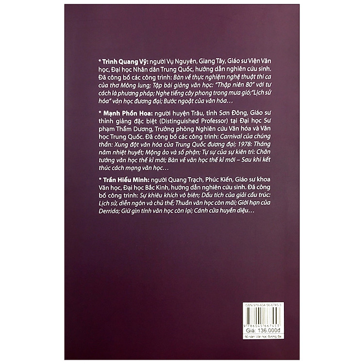 - Tác giả: Trình Quang Vỹ, Mạnh Phồn Hoa, Trần Hiểu Minh – các giáo sư văn học hàng đầu Trung Quốc.