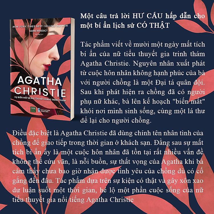Cuốn sách “Agatha Christie – Vụ Biến Mất Bí Ẩn Của Nữ Hoàng Trinh Thám” của tác giả Marie Benedict là một tác phẩm đáng chú ý dành cho những ai yêu thích thể loại trinh thám và văn học. Xuất bản bởi Nhà Xuất Bản Thanh Niên vào năm 2022, cuốn sách này sẽ đưa bạn vào một cuộc hành trình đầy kịch tính và bí ẩn.