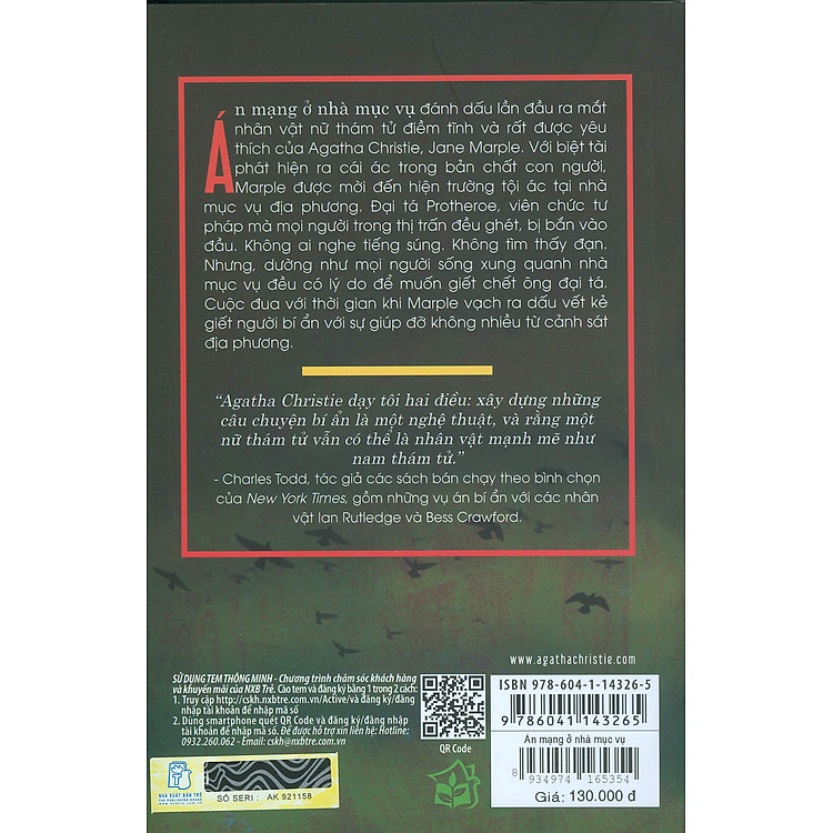 “Án Mạng Ở Nhà Mục Vụ” là một tác phẩm nổi tiếng của Agatha Christie, được tái bản vào năm 2019 bởi Nhà Xuất Bản Trẻ. Cuốn sách mang đến cho độc giả một câu chuyện hấp dẫn xoay quanh vụ án mạng bí ẩn xảy ra tại ngôi làng St. Mary Mead.
