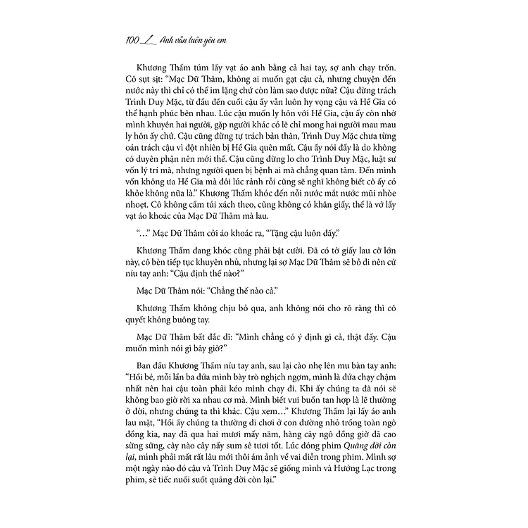 Cuối cùng, “Anh Vẫn Luôn Yêu Em (Tập 2)” không chỉ là một câu chuyện tình yêu, mà còn là một hành trình khám phá bản thân, tình yêu và sự tha thứ. Như tác giả đã nói: “Tình yêu chân chính không chỉ là sự gắn bó, mà còn là sự hiểu biết và chấp nhận.” Qua từng trang sách, bạn sẽ cảm nhận được rằng tình yêu có thể vượt qua mọi thử thách, chỉ cần ta có lòng tin và sự kiên nhẫn. Hãy để DocGia.vn giúp bạn so sánh giá và tìm kiếm những cuốn sách thú vị khác!