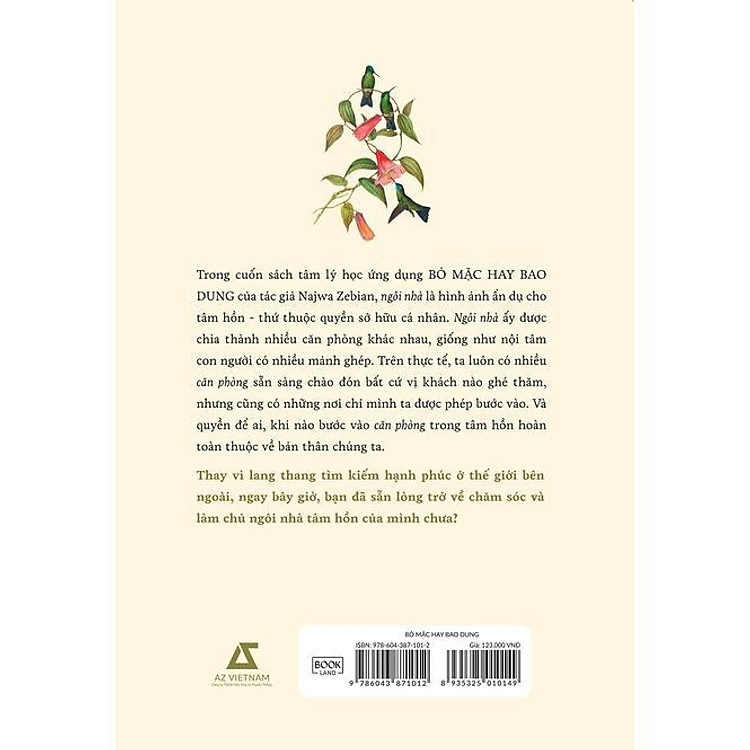 Bỏ Mặc Hay Bao Dung là tác phẩm nổi bật của tác giả Najwa Zebian, được dịch giả Phan Tường Linh chuyển ngữ. Sách thuộc thương hiệu Bookland và được xuất bản bởi Nhà xuất bản Thanh Niên. Với kích thước 14,5×20,5 cm và 296 trang, quyển sách này không chỉ thu hút người đọc bằng nội dung sâu sắc mà còn bởi hình thức bìa đẹp mắt. Giá bán lẻ cho cuốn sách là 123.000 VNĐ, một mức giá hợp lý cho những giá trị mà cuốn sách mang lại.