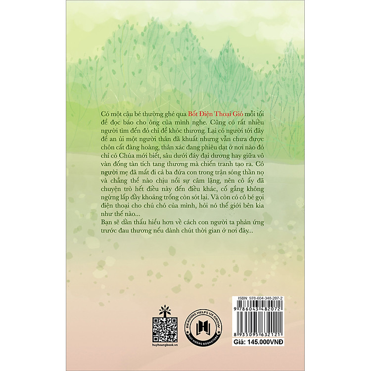 sách còn nguyên màng bọc, ko quăn góc hay trầy xước. Nội dung là chuyện về bốt điện thoại nơi mọi người đến, gửi lời vào gió biển, giãi bày nỗi nhớ với người thân đã mất của mình. Cũng nhờ bốt điện thoại đã mang 2 con người mất mát đến với nhau thành gia đình: 1 phụ nữ mất con gái và mẹ ruột bởi cơn sóng thần, và một người đàn ông mất vợ đang một mình nuôi con gái nhỏ.