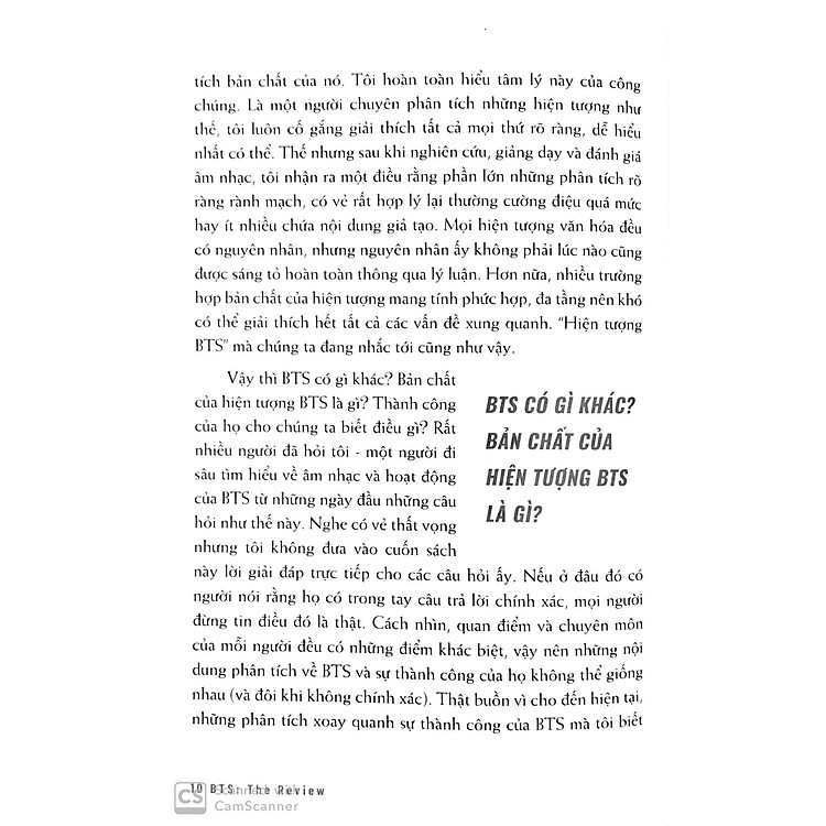 “BTS: The Review” là một tác phẩm nổi bật, đưa độc giả vào cuộc hành trình khám phá âm nhạc và ảnh hưởng văn hóa của BTS. Cuốn sách không chỉ tóm tắt những thành tựu nổi bật của nhóm mà còn khai thác sâu vào những câu chuyện ẩn sau từng bài hát, từng album. Bạn sẽ nhận ra rằng BTS không chỉ đơn thuần là những nghệ sĩ, mà họ còn là những người truyền tải thông điệp tích cực, khuyến khích giới trẻ theo đuổi đam mê và chấp nhận bản thân.