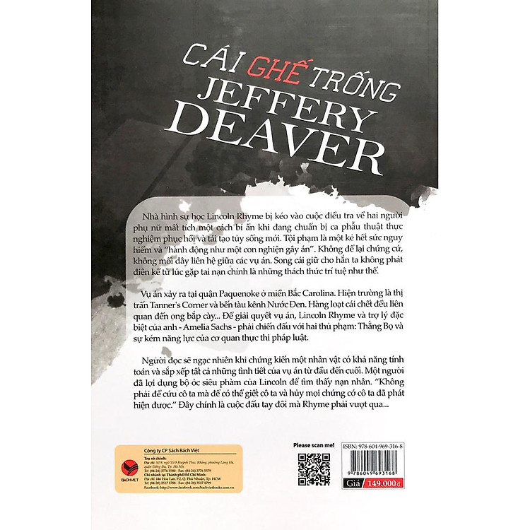 “Cái ghế trống” là một tác phẩm hấp dẫn của tác giả Jeffery Deaver, nổi tiếng với những câu chuyện ly kỳ và những tình tiết gây cấn. Cuốn sách này đưa người đọc vào một vụ án đầy kịch tính, nơi mà mọi chi tiết đều có thể trở thành manh mối. Với sự dịch thuật tỉ mỉ của Đinh Minh Hương, độc giả sẽ dễ dàng cảm nhận được sự hấp dẫn và lôi cuốn của cốt truyện.