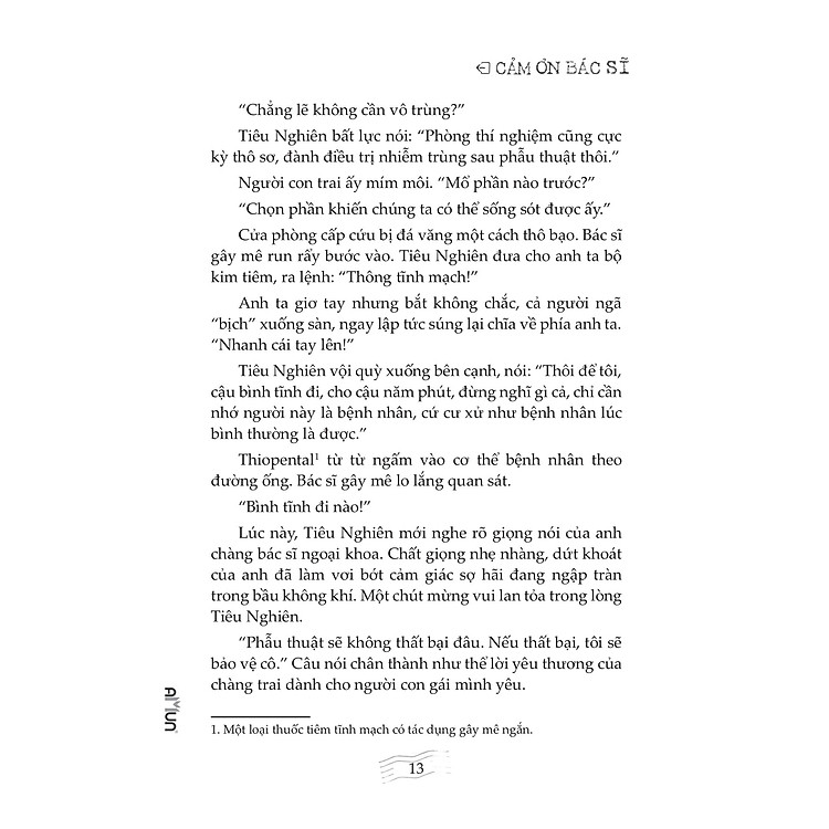 Cảm Ơn Bác Sĩ không chỉ đơn thuần là một tác phẩm tôn vinh nghề y, mà còn là một bức tranh sinh động về những nỗi niềm, trăn trở và cảm xúc mà bác sĩ phải đối mặt trong quá trình chăm sóc bệnh nhân. Tác giả Tiêu Nghiên khéo léo khắc họa những câu chuyện từ thực tiễn, giúp người đọc hiểu sâu hơn về sự hy sinh, nỗ lực và cả những thất bại mà những người trong ngành y tế phải trải qua. Qua từng trang sách, bạn sẽ thấy được một góc nhìn chân thực về cuộc sống của bác sĩ, không chỉ là ánh sáng của sự thành công mà còn là những bóng tối của nỗi đau và áp lực.