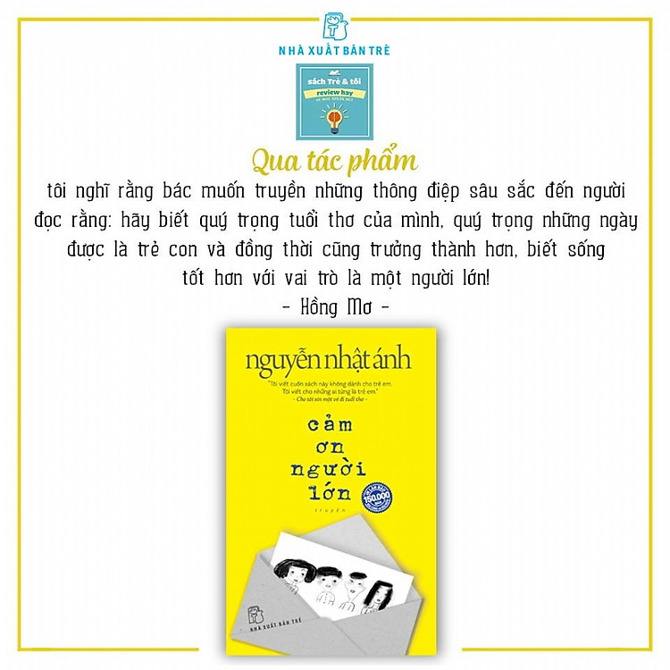 - Tác phẩm: “Cảm ơn người lớn” của Nguyễn Nhật Ánh