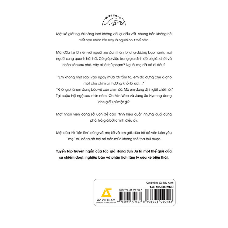 Căn Phòng Của Râu Xanh là một tuyển tập truyện ngắn đặc sắc của tác giả Hong Sun Ju, mang đến cho độc giả một cái nhìn sâu sắc về thế giới tâm lý phức tạp của con người. Tác phẩm này không chỉ đơn thuần là những câu chuyện mà còn là một hành trình khám phá sự chiếm đoạt, nghiệp báo và những khía cạnh tối tăm trong tâm hồn con người.
