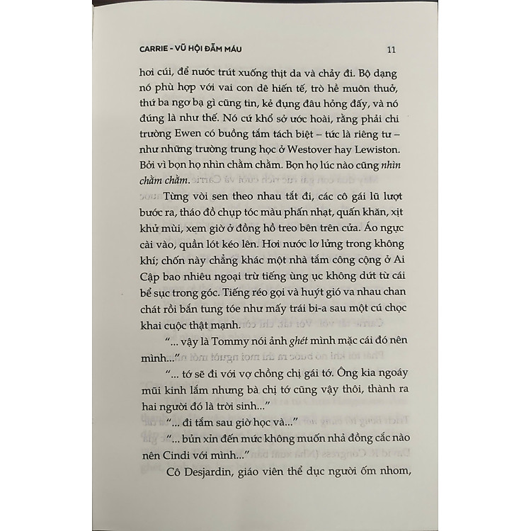 Carrie – Vũ hội đẫm máu là một trong những tác phẩm nổi bật của nhà văn Stephen King, người được biết đến với những câu chuyện kinh dị đầy ám ảnh. Cuốn sách kể về cuộc đời của một cô gái trẻ tên Carrie, người phải đối mặt với sự bắt nạt và cô lập từ bạn bè và gia đình. Bằng khả năng đặc biệt của mình, Carrie đã quyết định không để người khác tiếp tục làm tổn thương cô nữa, dẫn đến những tình huống kịch tính và không thể đoán trước.