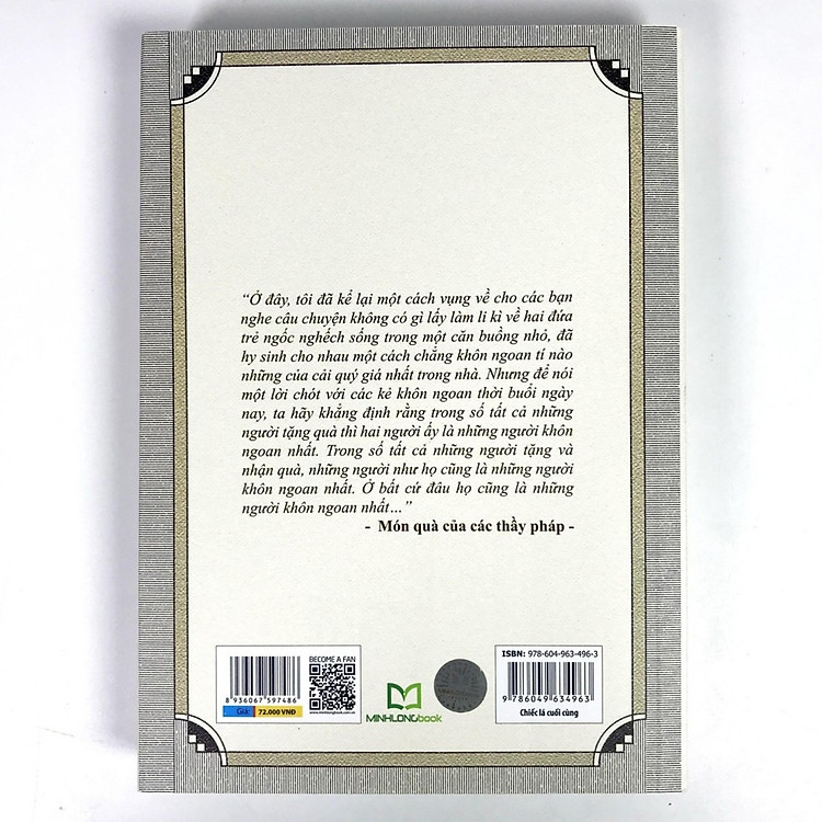 Như O. Henry đã từng nói: “Cuộc sống là những điều đẹp đẽ nằm trong những điều giản dị.” Cuốn sách CHIẾC LÁ CUỐI CÙNG không chỉ là một tuyển tập truyện ngắn mà còn là một hành trình khám phá những giá trị cốt lõi của cuộc sống. Bạn đã sẵn sàng để nhìn nhận và cảm nhận những điều quý giá xung quanh mình chưa? Hãy để CHIẾC LÁ CUỐI CÙNG đồng hành cùng bạn trong cuộc hành trình này.