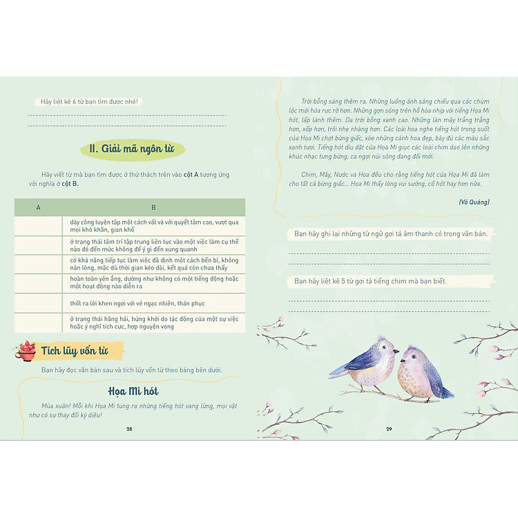 Thiết kế của “Chinh phục Tiếng Việt 3” không chỉ chú trọng vào nội dung mà còn tạo ra những trải nghiệm học tập thú vị cho các em. Mỗi trang sách được trang trí bằng hình ảnh sinh động, màu sắc bắt mắt, khuyến khích sự sáng tạo và hứng thú trong việc học. Điều này sẽ giúp các em không chỉ tiếp thu kiến thức một cách hiệu quả mà còn yêu thích môn Tiếng Việt hơn.