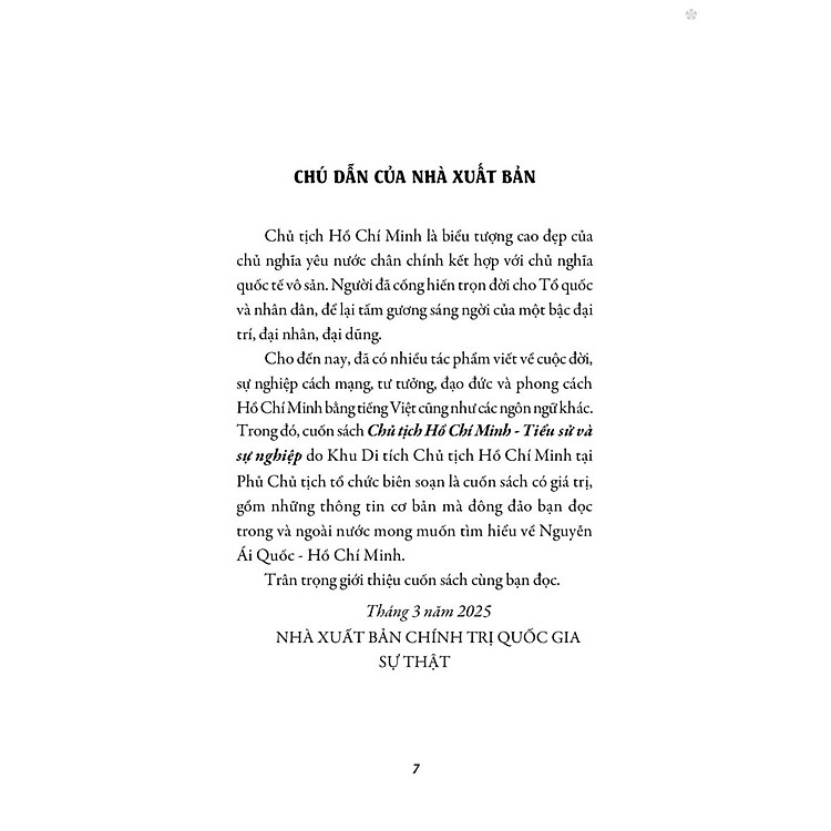 - Tên sản phẩm: Mua Chủ tịch Hồ Chí Minh – Tiểu sử và sự nghiệp – bản in 2025.