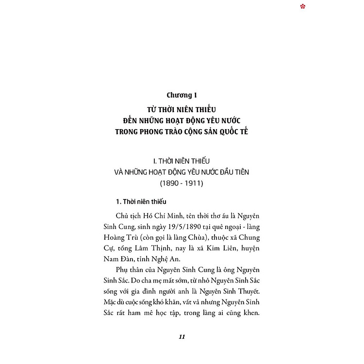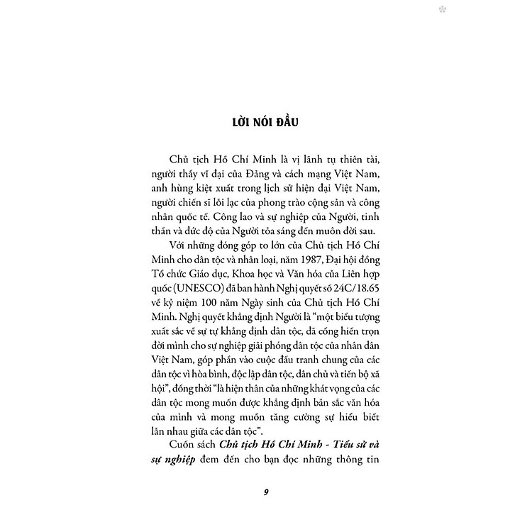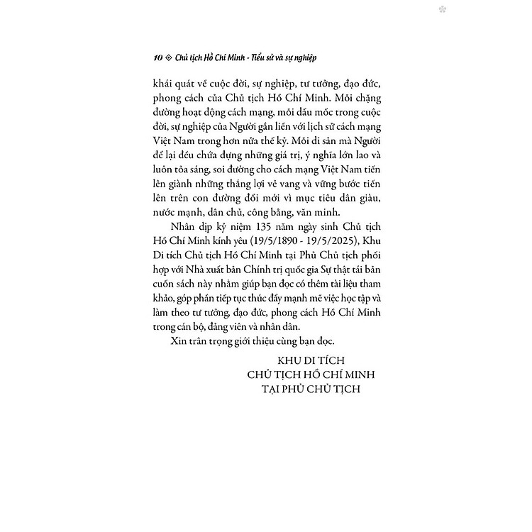 Chủ tịch Hồ Chí Minh – Tiểu sử và sự nghiệp không chỉ đơn thuần là một bản tóm tắt về cuộc đời của Hồ Chí Minh. Nó còn là một hành trình đưa bạn qua những cột mốc quan trọng trong cuộc đời của Người, từ những năm tháng tuổi trẻ đầy thử thách cho đến khi trở thành Chủ tịch nước. Cuốn sách khắc họa rõ nét những giá trị cốt lõi trong tư tưởng, đức độ và phẩm chất của Hồ Chí Minh, giúp bạn hiểu hơn về con người đã dành cả cuộc đời mình cho sự nghiệp giải phóng dân tộc.