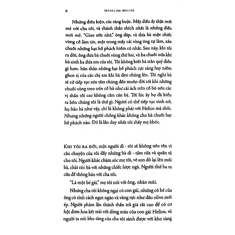Circe, một cô con gái của thần mặt trời Helios, không giống như những vị thần khác. Cô là một người phụ nữ mạnh mẽ nhưng cũng đầy yếu đuối, sống trong thế giới của thần thoại, phù thủy và những mối quan hệ phức tạp. Từ những cuộc phiêu lưu đầy kịch tính đến những khoảnh khắc đau thương, câu chuyện của Circe khám phá về tình yêu, sự phản bội và sự tự tìm kiếm bản thân. Cuốn tiểu thuyết không chỉ đơn thuần là một câu chuyện thần thoại mà còn là một hành trình khám phá tâm hồn con người.