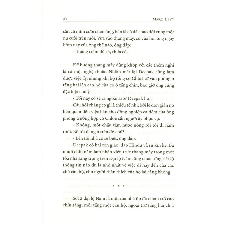 Cô gái như em… thì sao?! Là cô gái ở trên tầng cao nhất, thích ngắm mọi người phía dưới qua khung cửa sổ. Là cô gái ẩn danh ở phía sau những bài thoại được phát sóng. Là cô gái ngoan cố, dễ tổn thương, sợ ánh mắt của mọi người khi nhìn mình mà không phải nhìn mình. Là cô gái bất đắt dĩ nhận được sự cảm thông, giúp đỡ, ưu tiên từ người khác… Là cô gái mà anh – chàng trai thông mình từ bên kia Địa cầu – sẽ gặp trên những đại lộ ở N.Y. Đây là một câu chuyện tình, không nghi ngờ gì hơn nữa. Marc Levy vẫn thường viết những câu chuyện tình như vậy nhưng lần này có vẻ nhẹ nhàng hơn rất nhiều. Đan xen vào đó là chuyện tình đẹp đẽ đáng ngưỡng mộ của 2 nhân vật tuyến chính phụ, vợ chồng người gác thang may lâu năm gốc Ấn. Mình cảm thấy tình yêu và sự thấu hiểu sâu sắc của họ, từ lúc bỏ lại những lề lối cũ kỹ, vượt đại dương đến một miền đất xa lạ sinh sống. Tình yêu không chỉ là chuyện với người mà còn có cả chuyện với những vật tưởng chừng vô tri như một tòa nhà 9 tầng, một buồng thang may cổ… Vậy nên đây là cuốn sách đáng gặm nhấm nếu bạn cũng có những tình yêu tương tự như thế!