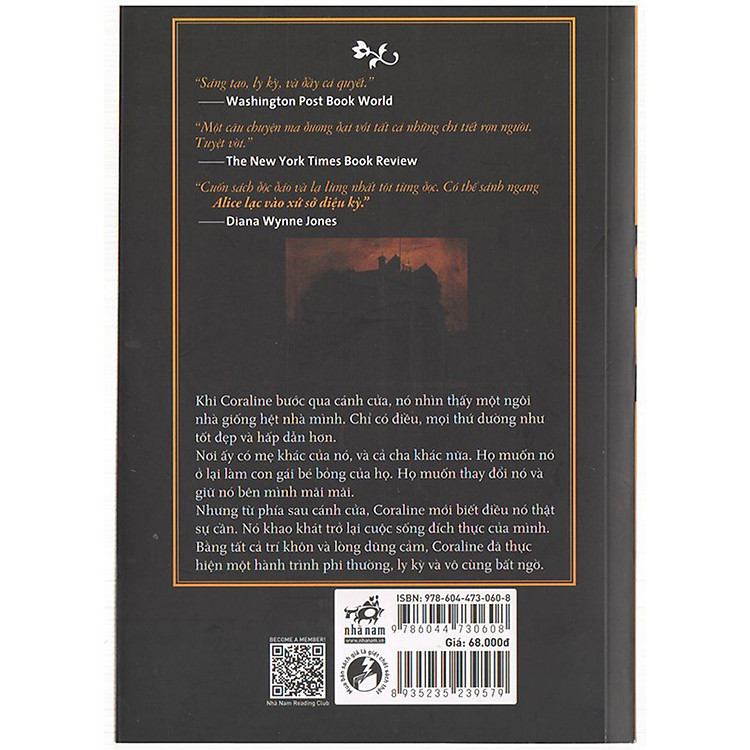 Mua Coraline tại NHBook, một tác phẩm vượt thời gian của Neil Gaiman, là một cuốn sách không thể bỏ qua cho những ai yêu thích thể loại giả tưởng và kỳ bí. Trong câu chuyện, Khi Coraline bước qua cánh cửa, cô bé phát hiện ra một ngôi nhà giống hệt như nhà mình. Tuy nhiên, mọi thứ tại đây lại tốt đẹp và hấp dẫn hơn rất nhiều.