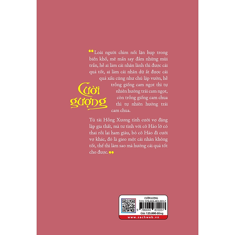 Đặc biệt, tác phẩm còn mang đến những giá trị văn hóa độc đáo của miền Nam, từ phong tục tập quán đến ngôn ngữ sử dụng. Điều này không chỉ làm cho cuốn tiểu thuyết trở nên sinh động mà còn giúp bảo tồn và phát huy những giá trị văn hóa đặc trưng của dân tộc. Với “Mua Cười gượng”, NXB TỔNG HỢP tự hào giới thiệu một tác phẩm văn học giá trị, xứng đáng có mặt trong tủ sách của mỗi người yêu văn học Việt Nam.