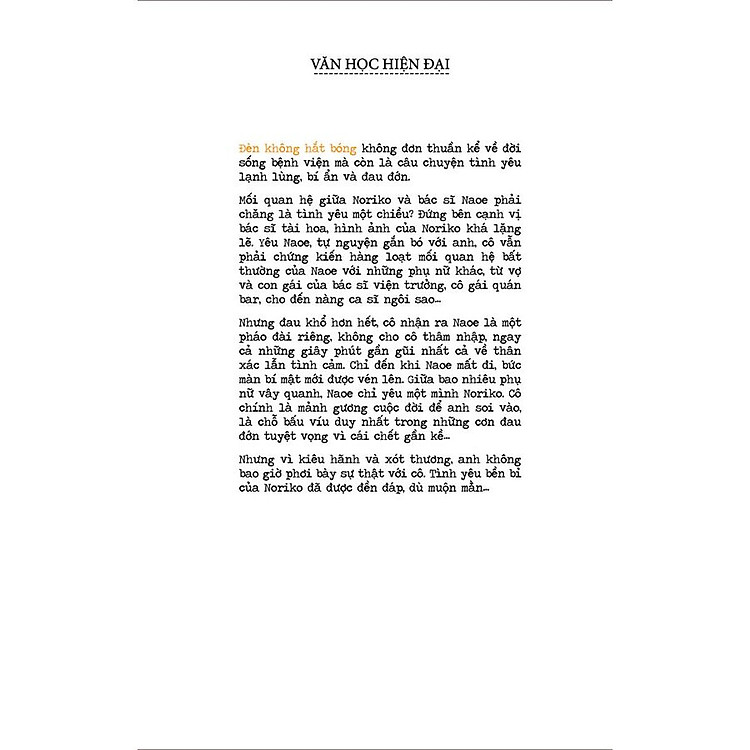 “Đèn Không Hắt Bóng” không chỉ đơn thuần là một câu chuyện về cuộc sống ở bệnh viện, mà còn là một bức tranh đa chiều về tình yêu trong bối cảnh đầy thử thách. Tác phẩm xoay quanh mối quan hệ giữa Noriko và bác sĩ Naoe, nơi mà tình yêu không chỉ là sự ngọt ngào mà còn chứa đựng nỗi đau và những bí ẩn. Qua từng trang sách, bạn sẽ dần khám phá được cách mà tình yêu có thể tồn tại ngay cả trong những hoàn cảnh khó khăn nhất, thậm chí là trong mối quan hệ giữa người bệnh và bác sĩ.