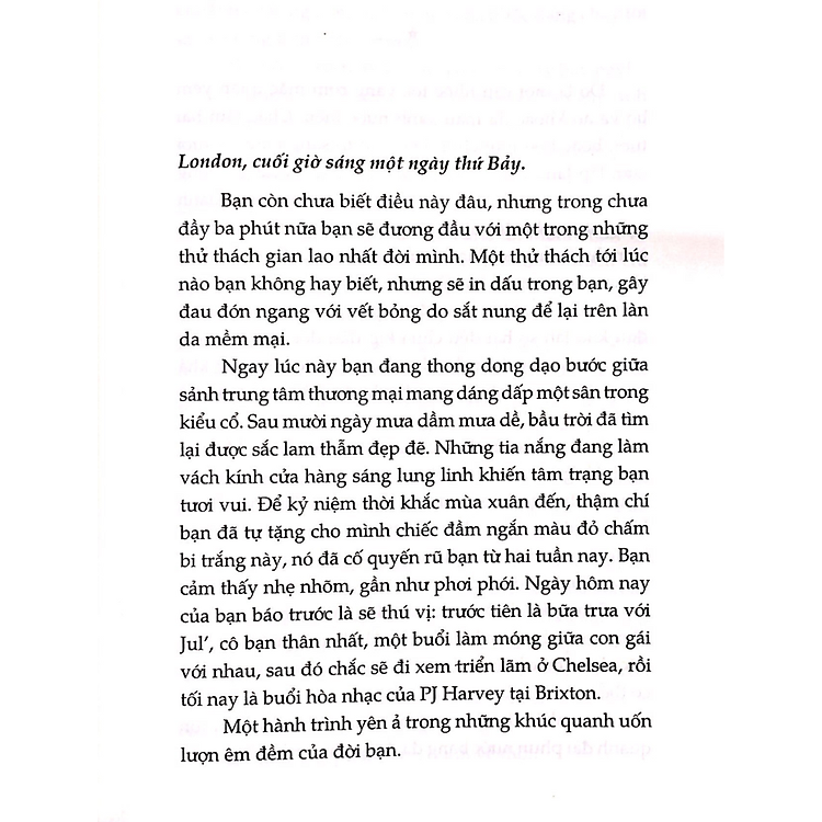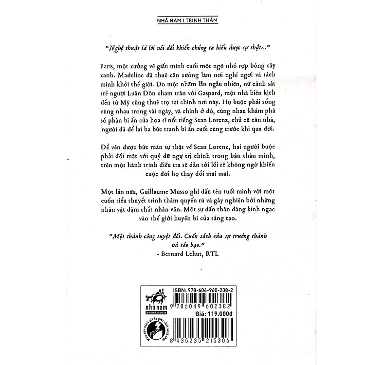 Nội dung sách ko có gì để chê nx rồi, mình từng đọc quyển hẹn em ngày đó của Musso và cực kì ấn tượng vs nó, đến quyển này càng ko làm mình thất vọng, nội dung siêu hay và cuốn, hấp dẫn hồi hộp và bất ngờ. Một quyển sách đáng đọc một lần trong đời và mình sẽ đọc tất cả tác phẩm của Musso.