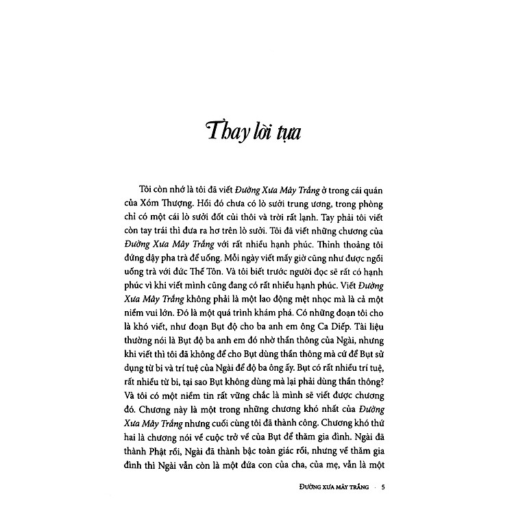 Đường Xưa Mây Trắng – Theo Gót Chân Bụt mang đến cho độc giả một cái nhìn sâu sắc về cuộc đời và tư tưởng của Bụt. Qua những trang viết đầy chất thơ, tác giả khắc họa không chỉ hình ảnh của một vị Thầy, mà còn là một người bạn đồng hành trong hành trình tìm kiếm ánh sáng. Cuốn sách này không chỉ đơn thuần là tiểu sử, mà còn là một tác phẩm nghệ thuật chứa đựng sự chiêm nghiệm về cuộc sống, về tình yêu và những giá trị nhân văn.