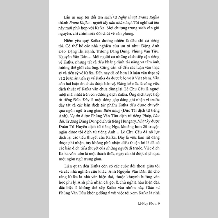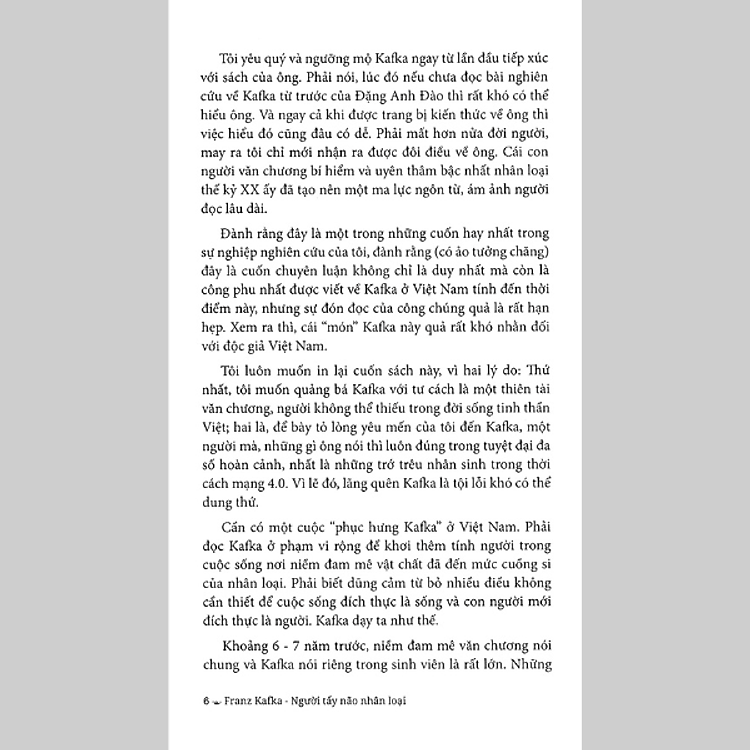 Khám Phá Tâm Lý Nhân Vật: Cuốn sách giúp độc giả hiểu rõ cách mà Kafka xây dựng các nhân vật phức tạp, không chỉ đơn thuần là những hình tượng mà còn là những phản ánh của chính bản thân con người trong xã hội. Mình thấy việc này thực sự giúp người đọc thấu hiểu hơn về chính mình.