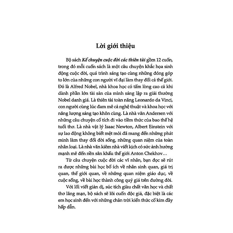 Khi nhắc đến những tên tuổi lớn trong văn học, không thể không nói đến Anton Chekhov – một người đã để lại dấu ấn sâu đậm trong lòng người đọc. Bạn có bao giờ tò mò về hành trình sáng tạo nghệ thuật của những thiên tài như ông? Cuốn sách “Kể Chuyện Cuộc Đời Các Thiên Tài: Anton Chekhov” sẽ đưa bạn trở về những năm tháng đầy cảm hứng, khám phá không chỉ sự nghiệp mà còn cả tâm hồn của một nhà văn vĩ đại. Cuốn sách này sẽ giúp bạn hiểu rõ hơn về những gì đã hình thành nên một Anton Chekhov – từ những trải nghiệm, suy tư đến những tác phẩm để đời.