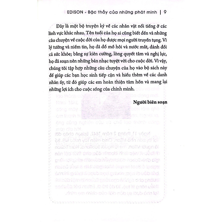 Cuốn sách này do những nhà biên soạn có uy tín thực hiện, những người đã dành nhiều thời gian nghiên cứu và tìm hiểu về cuộc đời Edison. Họ không chỉ viết về sự nghiệp của ông mà còn khéo léo lồng ghép những bài học cuộc sống mà mỗi độc giả đều có thể áp dụng. Điều này tạo nên giá trị thực sự cho cuốn sách.