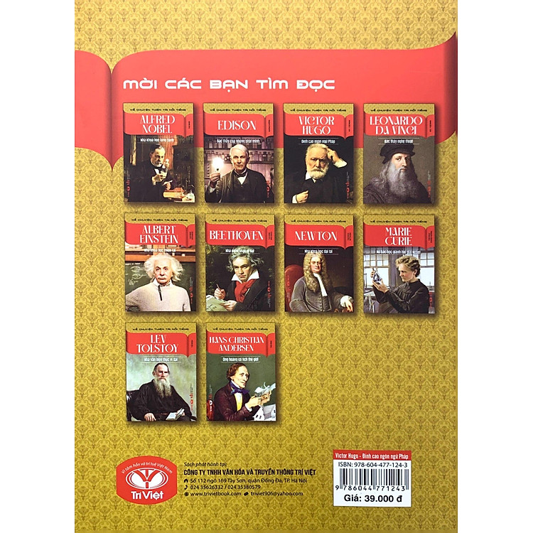 Bạn có bao giờ tự hỏi điều gì đã tạo nên những thiên tài trong lịch sử? Làm thế nào những con người bình thường lại có thể đạt được những thành tựu phi thường, để lại dấu ấn sâu sắc trong văn hóa và khoa học? “Kể Chuyện Thiên Tài Nổi Tiếng” của Victor Hugo sẽ đưa bạn vào một hành trình khám phá cuộc đời của những danh nhân lừng lẫy, từ Alfred Nobel cho đến Leonardo Da Vinci. Cuốn sách này không chỉ đơn thuần là một tập hợp các câu chuyện, mà còn là nguồn cảm hứng mạnh mẽ cho bất kỳ ai đang tìm kiếm đam mê và mục tiêu trong cuộc sống.