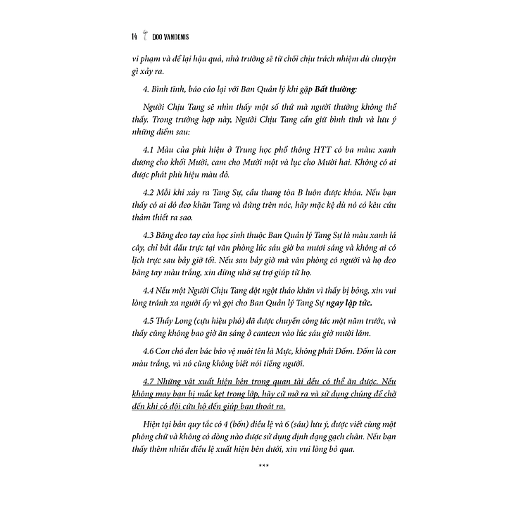 “Lớp Có Tang Sự Không Cần Điểm Danh” là một tác phẩm nổi bật của tác giả Doo Vandenis, mang đến cho độc giả một cái nhìn sâu sắc về những khía cạnh của cuộc sống học đường. Với phong cách viết tinh tế và lôi cuốn, tác giả khéo léo vẽ nên bức tranh chân thực về tâm tư của những học sinh trong một lớp học đang đối mặt với những biến cố to lớn. Cuốn tiểu thuyết không chỉ đơn thuần là câu chuyện về học đường mà còn là hành trình khám phá bản thân và đối diện với nỗi đau, mất mát.